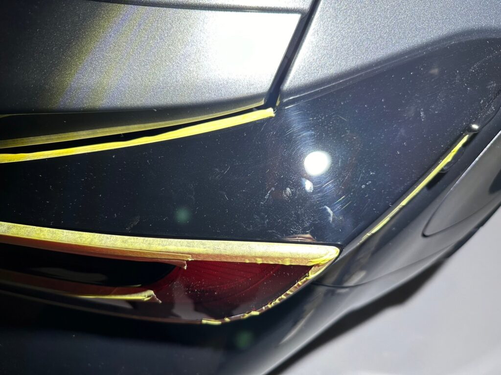 オーロラ傷は、要は磨きの痕跡です。照明を当てることにより現れる傷で、この状態でコーティング作業をしても仕上がりが悪くなるだけです。