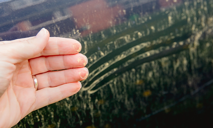 ボディに付着した花粉をそのまま放置して、雨に濡れ、そのまま乾いてしまうと普通の雨シミ以上に厄介なシミになってしまいます。