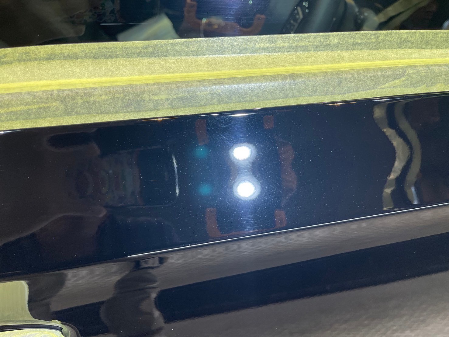 下準備後はボディをしっかりと乾燥させ、専用ブース内に入れてマスキング作業をします。それから、磨き作業に入ります。