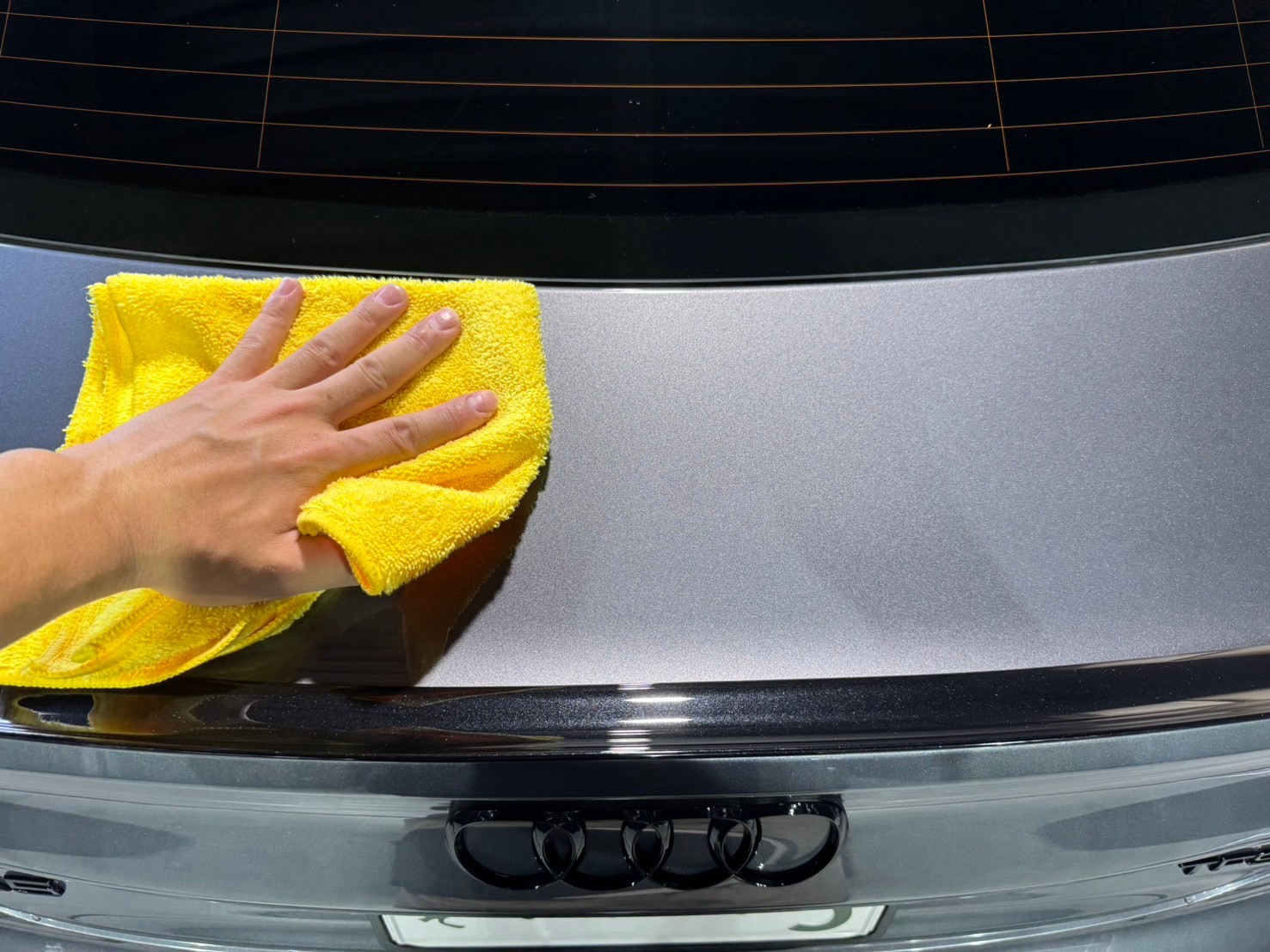 無料メンテナンスで水アカなど通常の洗車ではで落ちない汚れを除去し、ボディ拭き上げ後、オリジナルのメンテナンスリキッド(トップコート)を使って仕上げていきます。トップコートを施すことにより保護被膜の形成ができ、汚れに強くなり艶感がより増します☺