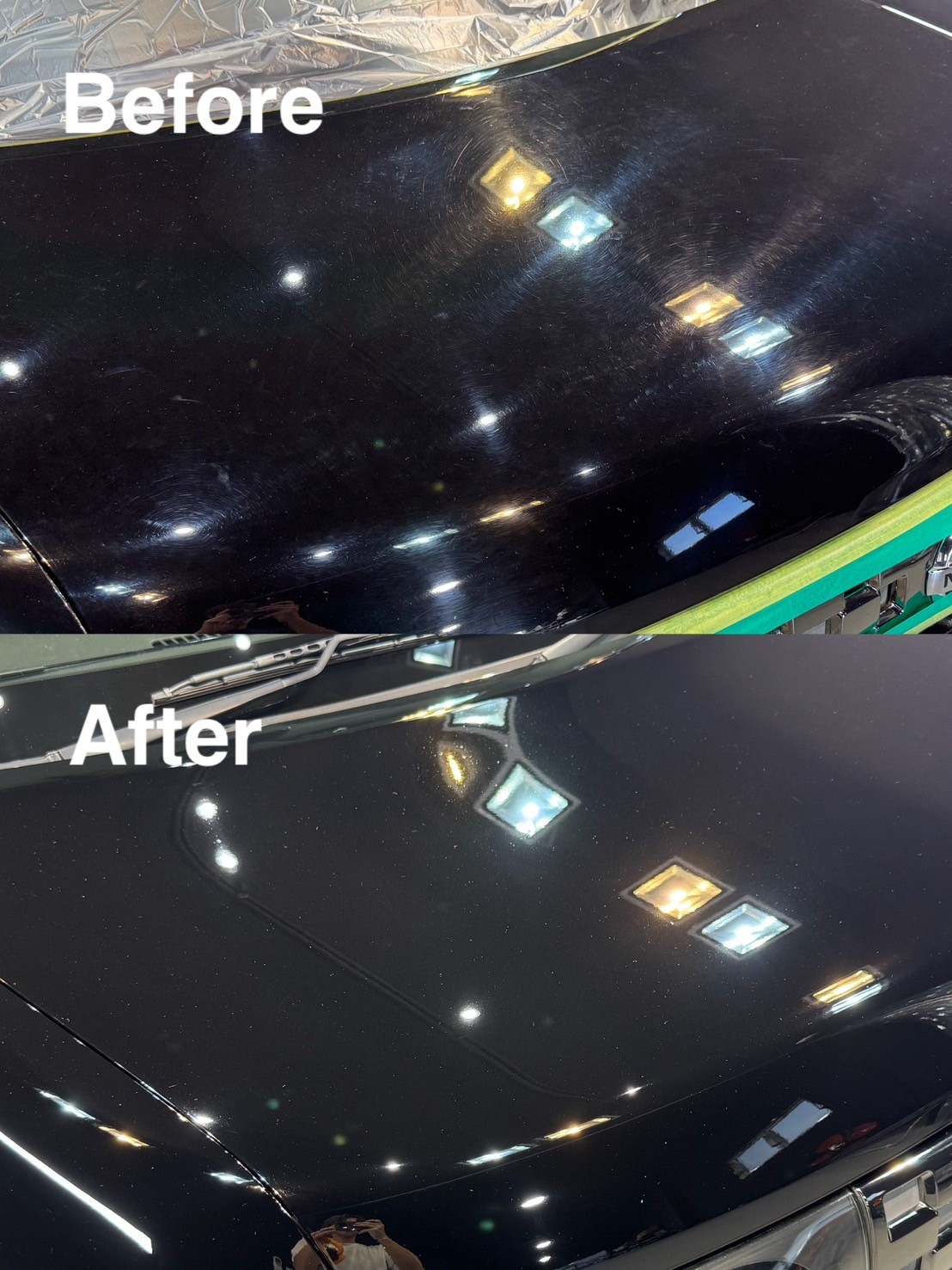 簡易コーティング施工店であればほとんど研磨をせず、そのままコーティング剤を塗り込む事が多く仕上がりもとても悪いですが、