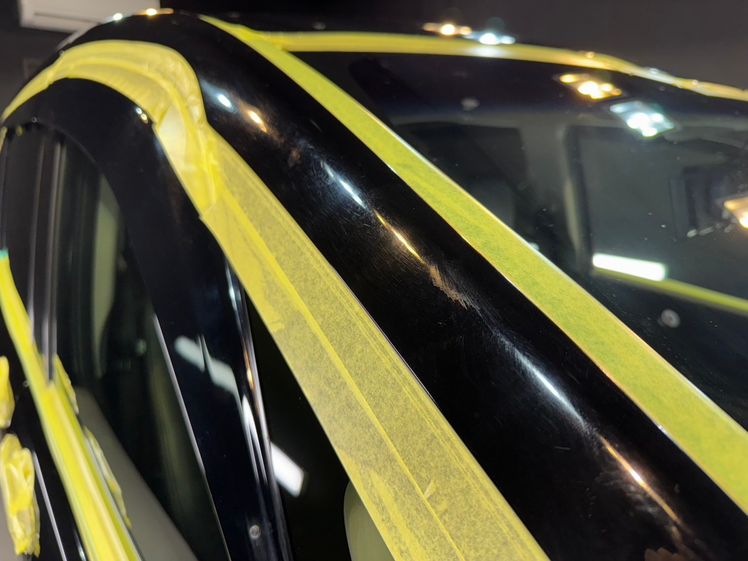 溶剤を適正使用した下準備を行い、専用ブースにてマスキング→ボディの状態チェックを行っていきます。