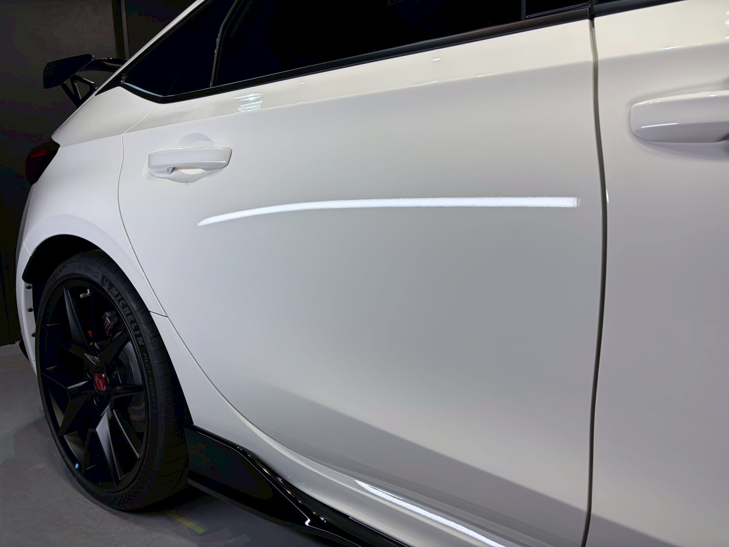 通常のホワイトに比べキレイに維持する事が難しく、施工前の鏡面研磨とガラスコーティングが必須でございます。
